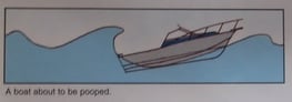 - When the stern wave catches up with the boat; either propelling it forward or breaking over the stern (possibly causing swamping).
