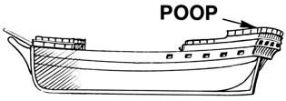 The name comes from the French word for stern 'la poupe' therefore technically the poop deck is the stern deck. On classic sailign ships, this was usually elevated and was the helms position in order to navigate and observe the actions of the crew and sails.