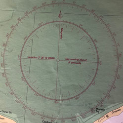 6) CALCULATE VARIATION: LOCATE THE COMPASS ROSE ON YOUR CHART NEAREST TO YOUR POINT OF TRAVEL (BEARING)